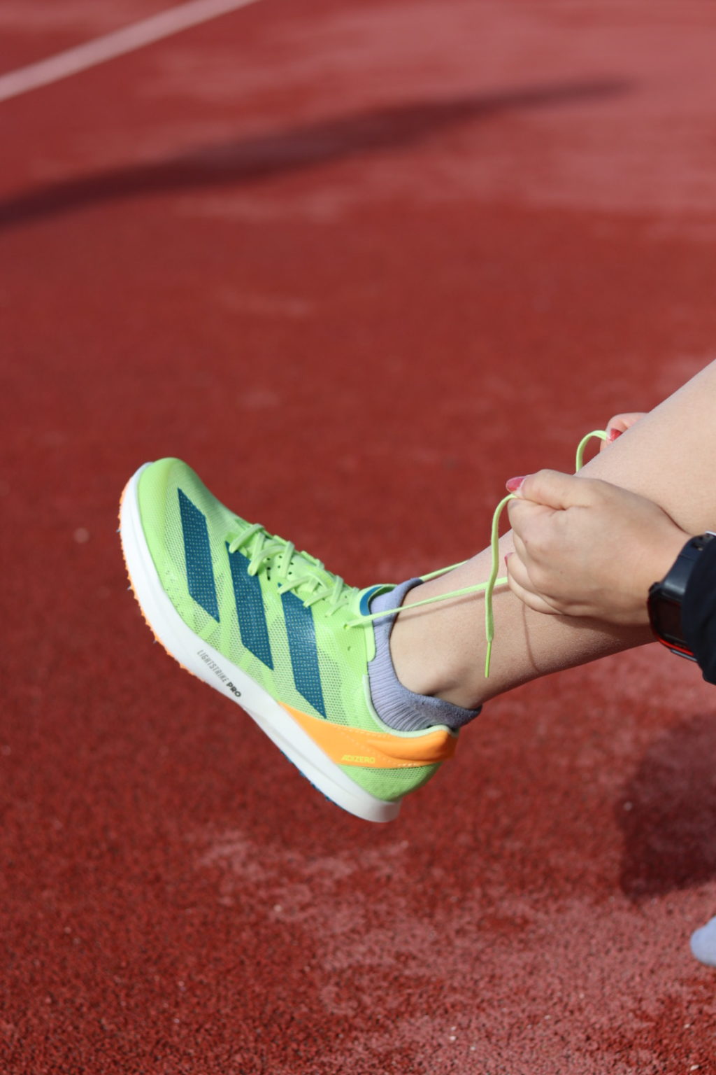« Je n’avais jamais couru avec des pointes nouvelle génération avant de chausser les Adizero Ambition en début d’année. Depuis presque toujours je ne cours qu’avec des Adidas. J’ai fait la saison de 800m indoor avec les Ambition et je les trouve vraiment bien, très dynamiques et assez rigides donc c’est bien pour aller vite ça renvoie bien. Par contre sur des séances longues ou quand on les met plusieurs fois par semaine, ça peut faire mal aux mollets. J’ai donc testé les Avanti TYO et je les trouve vraiment meilleures sur ce point. Elles sont beaucoup plus confortables, ce sont des chaussons. Sur des séances longues, je sens vraiment que ça préserve et que mes muscles se fatiguent moins. Par contre pour aller vite, ça renvoie moins. Sur une séance de type (500-400-300-200) je sentais que je serais allée plus vite sur le dernier 200 avec des Ambition. Avec les Avanti cela dit j’en suis sortie moins usée. Je pense que pour l’entraînement et les distances supérieures au 1500, les Avanti sont à privilégier. Mais pour des distances courtes, des séances de vitesse et du 800m, les Ambition sont plus adaptées.«