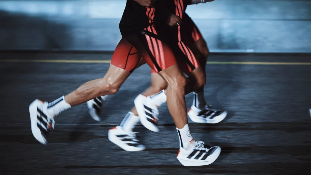 Cette hauteur de semelle intermédiaire de 50 millimètres place l’adidas Prime X Evo hors des réglementations de World Athletics.