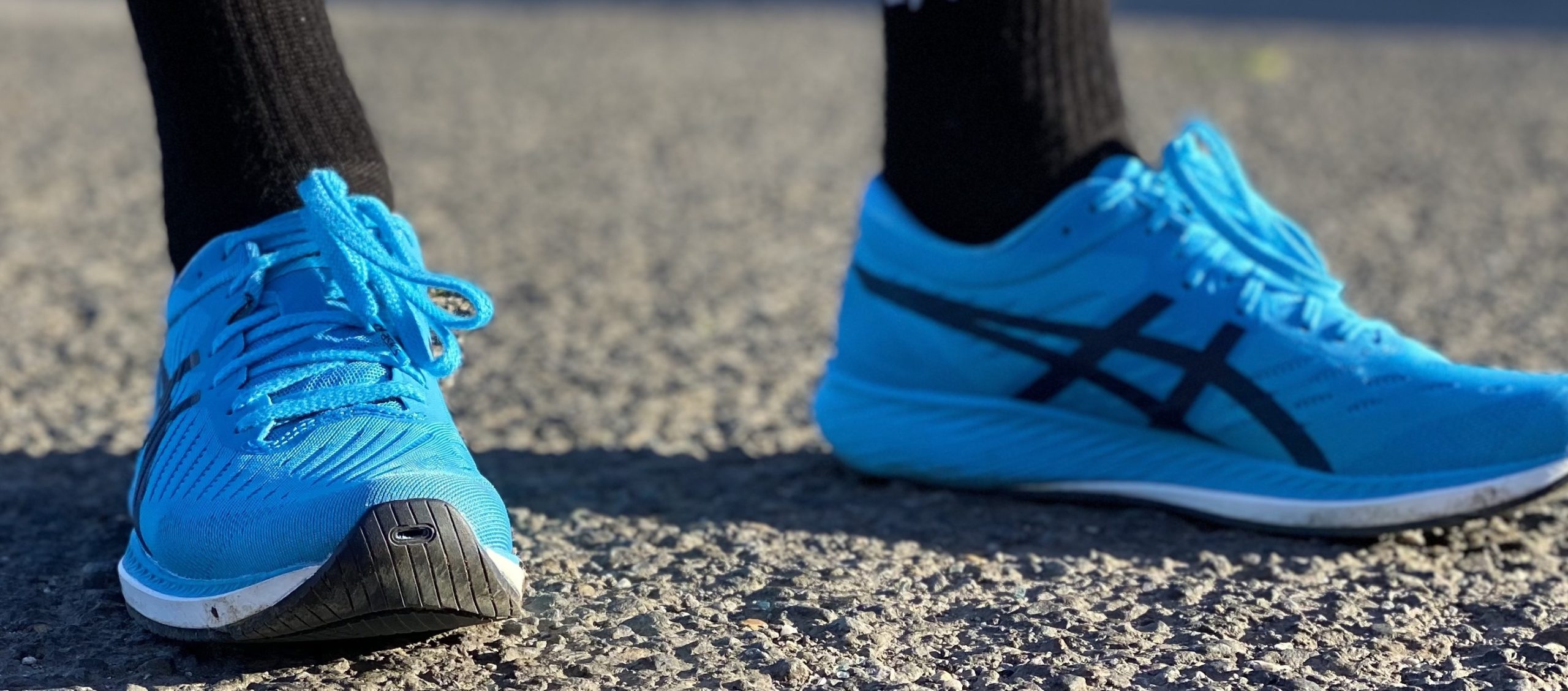 - Allier dynamisme d’une « chaussure carbone » avec la finesse d’une paire de « chaussures légères » est le pari réussi d’ASICS. La chaussure est très légère (190g) et c’est clairement plaisant. Je suis un adepte de ce type de chaussures, j’ai beaucoup couru en Adios et en Takumi de chez Adidas et je retrouve cette même sensation de légèreté.