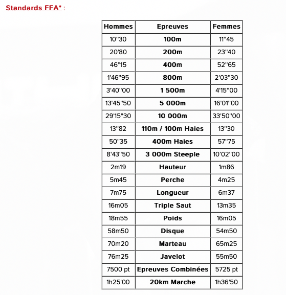 Les modalités de sélection par la fédération française d'athlétisme