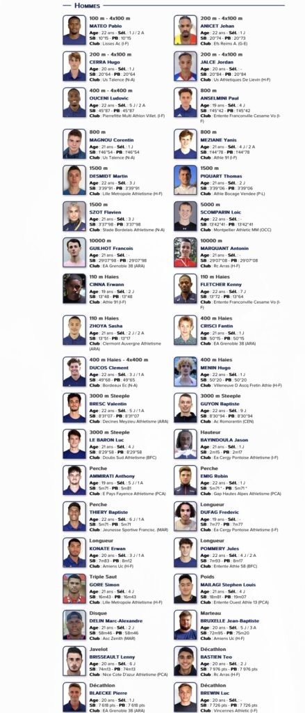 Comme évoqué ci-dessus : la stratégie adoptée depuis quelques temps déjà par la fédération française d’athlétisme réside sur la performance pure et une quête de l’élitisme. Autrement dit : se contenter de réaliser les minimas fixés par la European (ou World) Athletics ne constitue en aucun cas une certitude d’obtenir sa place en équipe de France (et cela même s’il n’y a aucun athlète français ayant fait mieux !). L’idée est donc clair : emmener uniquement des athlètes capables de se classer dans les 8 premières places de leur discipline permettant d’obtenir une place de finaliste.