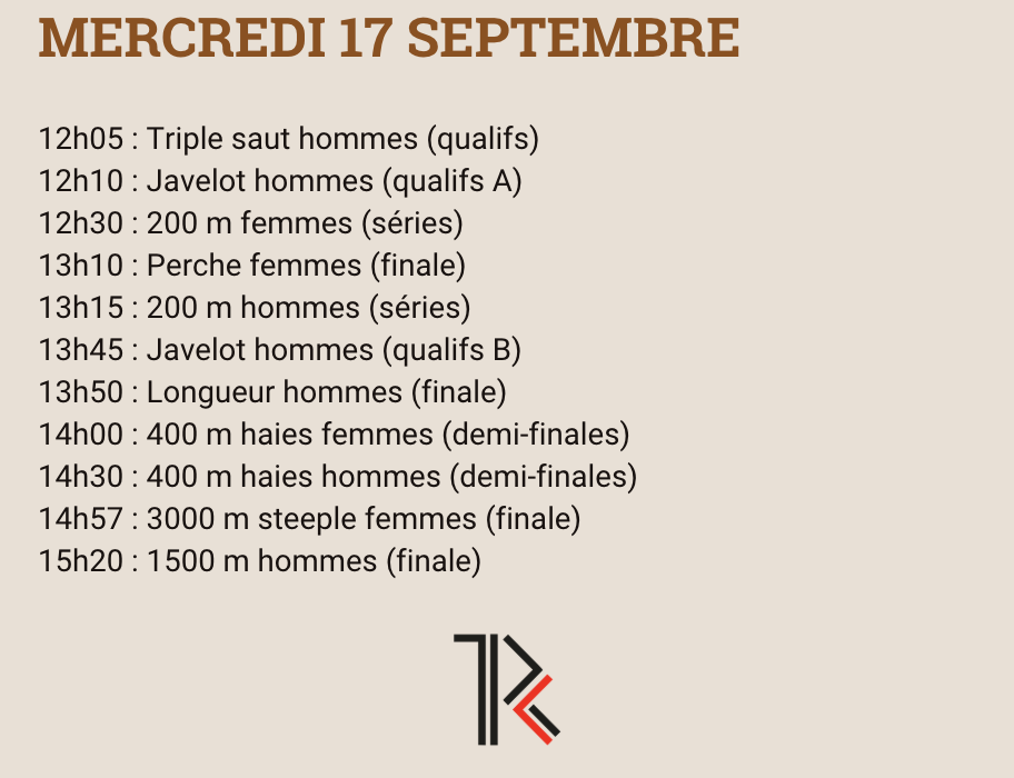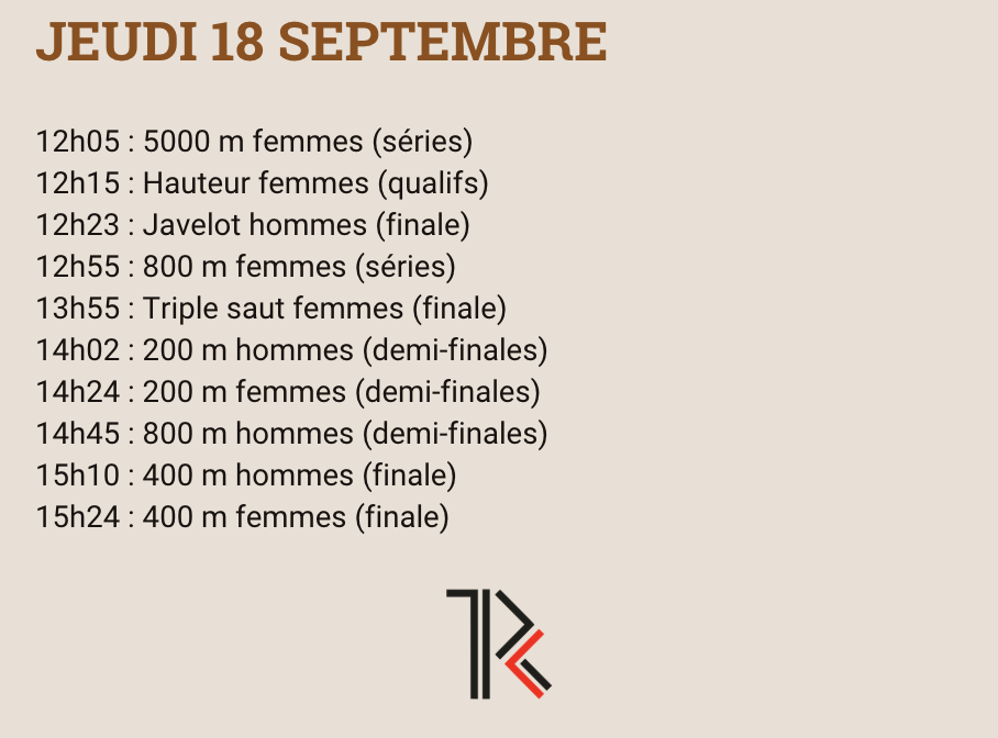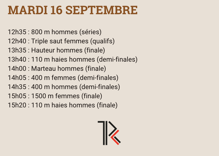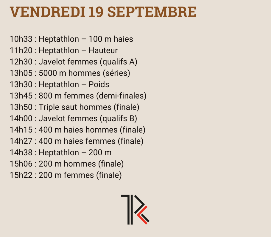 - Des épreuves très attendues comme le saut à la perche, le triple saut, les 400 m haies, ou encore les courses de fond rythmeront la semaine.