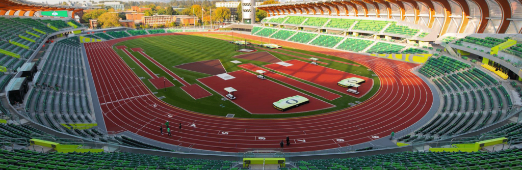 Eugene, située dans l’État de l’Oregon aux États-Unis, est une ville historiquement ancrée dans le monde de l’athlétisme. Connue sous le nom de « TrackTown USA », elle accueille régulièrement des événements d’athlétisme d’envergure. La Diamond League de Eugene se tient au célèbre stade Hayward Field, réputé pour son atmosphère électrisante et son public passionné.