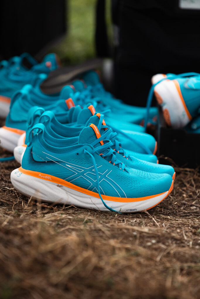 À présente, rentrons un peu plus dans le détail. Si votre objectif n’est pas la performance pure, au sens où vous fichez un peu du chrono que vous allez réaliser, que votre objectif est simplement d’arriver au bout de ces 42 kilomètres sans vous blesser, alors privilégiez plutôt des modèles avec un maximum d’amorti, de confort et si possible de stabilité, en particulier si vous êtes un coureur « lourd » (NDLR : d’un poids supérieur à 80kg : aucune discrimination ici, cela a son importance lors du choix de modèles de chaussures). À date, 2 à 3 modèles sortent du lot selon nous : la Asics Gel Nimbus 25 en premier lieu, élue chaussure la plus confortable au monde en 2023, puis la Nike ZoomX Invincible 3 et la On Cloudmonster. Selon nous ce tryptique est ce qui se fait de mieux en termes de chaussures d’endurance, mais cela dépend des goûts de chacun. Des marques comme Brooks, Hoka One One ou Saucony fournissent aussi de bons modèles.