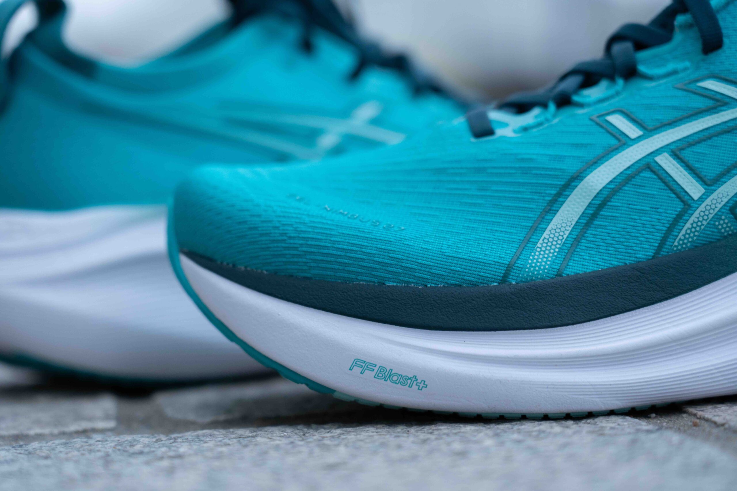 Côté japonais, la combinaison PureGEL et FF BLAST PLUS ECO de la Nimbus 27 offre un amorti ciblé qui absorbe les chocs sans sacrifier la réactivité. Cette approche technique convient aux coureurs cherchant un équilibre mesuré.