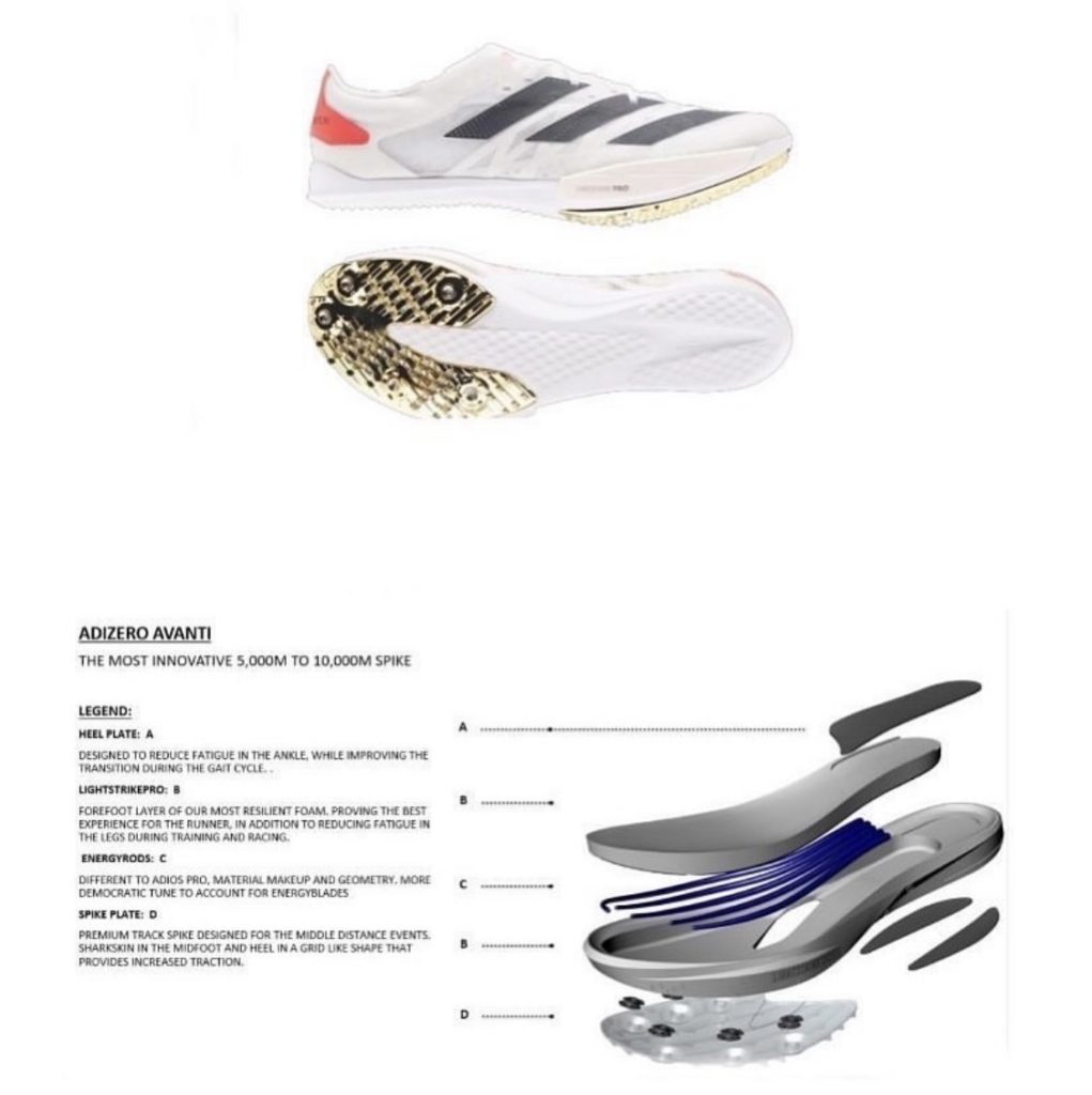 Du côté des chaussures à pointes, un sujet quelque peu différent que nous traiterons à la fin de cet article, Nike devrait également être très bientôt concurrencée (NDLR : New Balance en fait déjà et des prototypes de pointes Adidas en carbone ont déjà été aperçus : photo ci-dessous)