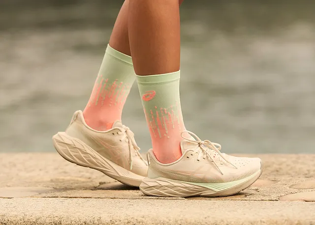 Semelle incurvée : L’Asics Novablast présente une semelle incurvée qui favorise une foulée fluide et naturelle, contribuant à une sensation de roulement agréable.