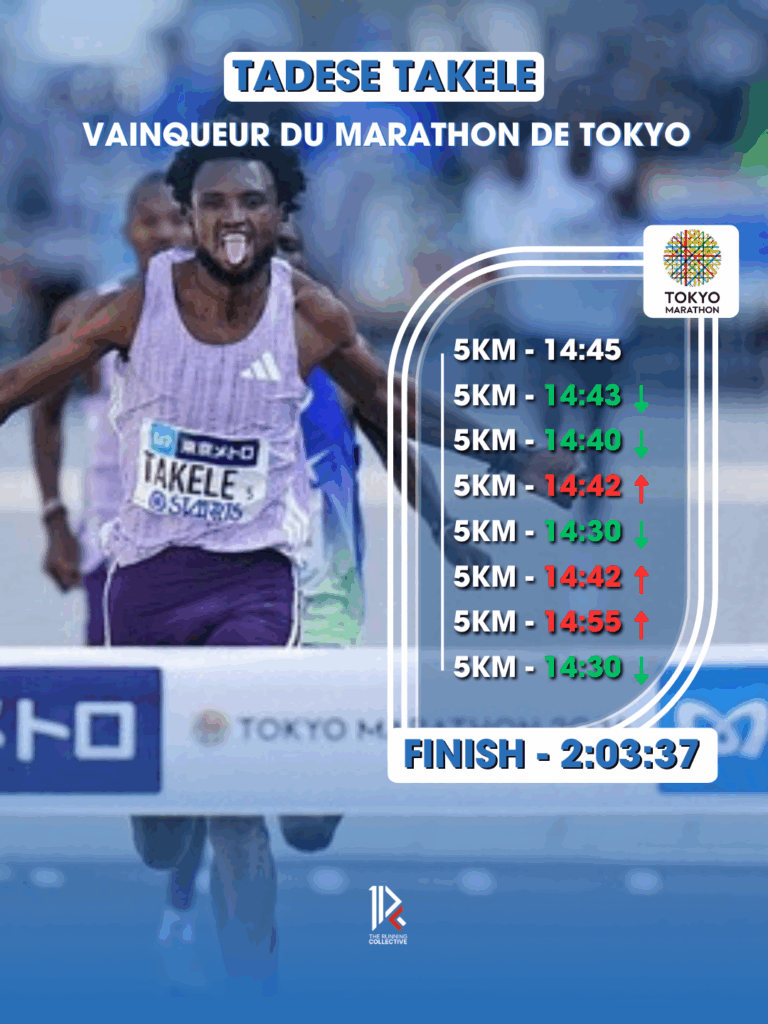 L’Éthiopien Tadese Takele a conservé son titre de Tokyo dans des conditions spectaculaires. Resté discret pendant 40 kilomètres, il a déclenché son attaque décisive dans les derniers hectomètres, passant devant le Palais impérial avant le sprint final. À 23 ans, il devient le premier marathonien à s’imposer deux fois consécutivement à Tokyo depuis Birhanu Legese (2019-2020).