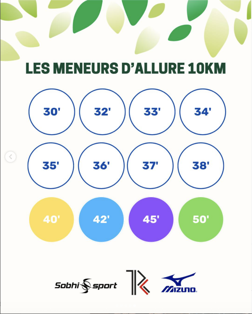 Sur le 10km, retrouvez des pacers couvrant des allures de 30′ à 50′, vous permettant de viser précisément votre objectif chronométrique. Il y aura un pacer pour chacun de ces chronos : 30′, 23′, 33′, 34′, 35′, 36′, 37′, 38′, 40′, 42′, 45′, 50′.