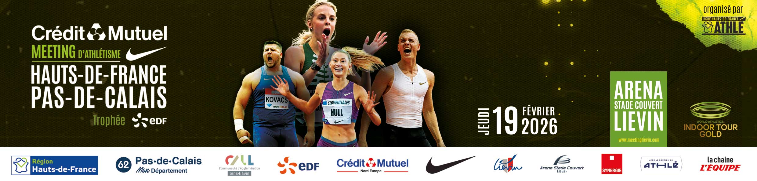 Rendez-vous le jeudi 19 février 2026 à l’Aréna stade couvert de Liévin pour cette nouvelle édition. Au programme : 16 épreuves réunissant l’élite mondiale de l’athlétisme indoor.