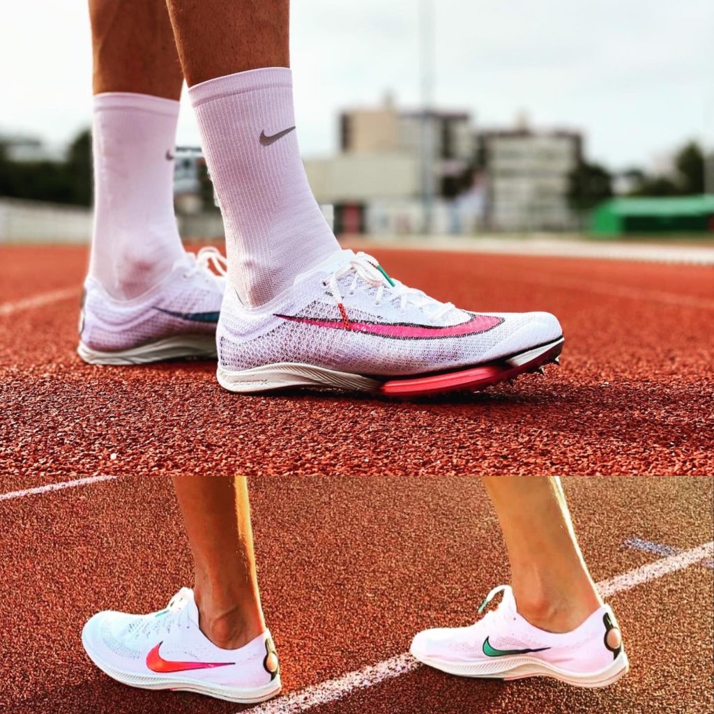 Notre retour : la paire n’ayant été mise à disposition que pour des sponsorisés, nous n’avons pas eu la chance de l’essayer. Néanmoins, il semblerait que cette paire conçue à l’origine pour le sprint/sprint long (n’oublions pas que la pointe destinée au sprint court, la Viperfly, a été annulée) séduise les demi-fondeurs avec un profil « rapide », autrement dit les coureurs de 400/800. Visiblement rigide, avec une plaque carbone recouvrant l’entièreté de la semelle et pas seulement la face avant comme sur la Air Zoom Victory, elle paraît plus robuste et plus stable. Signe que cette pointe est initialement prévue pour le sprint, il n’y a pas le petit trou d’aération au niveau du talon et le mesh utilisé semble moins respirant. Notre avis est que les amateurs de chaussures rigides avec un fort renvoi y trouveront leur compte. Attention néanmoins si vous n’êtes pas un minimum puissant, il y a fort à parier que vous ne tiriez pas parti de cette chaussure.