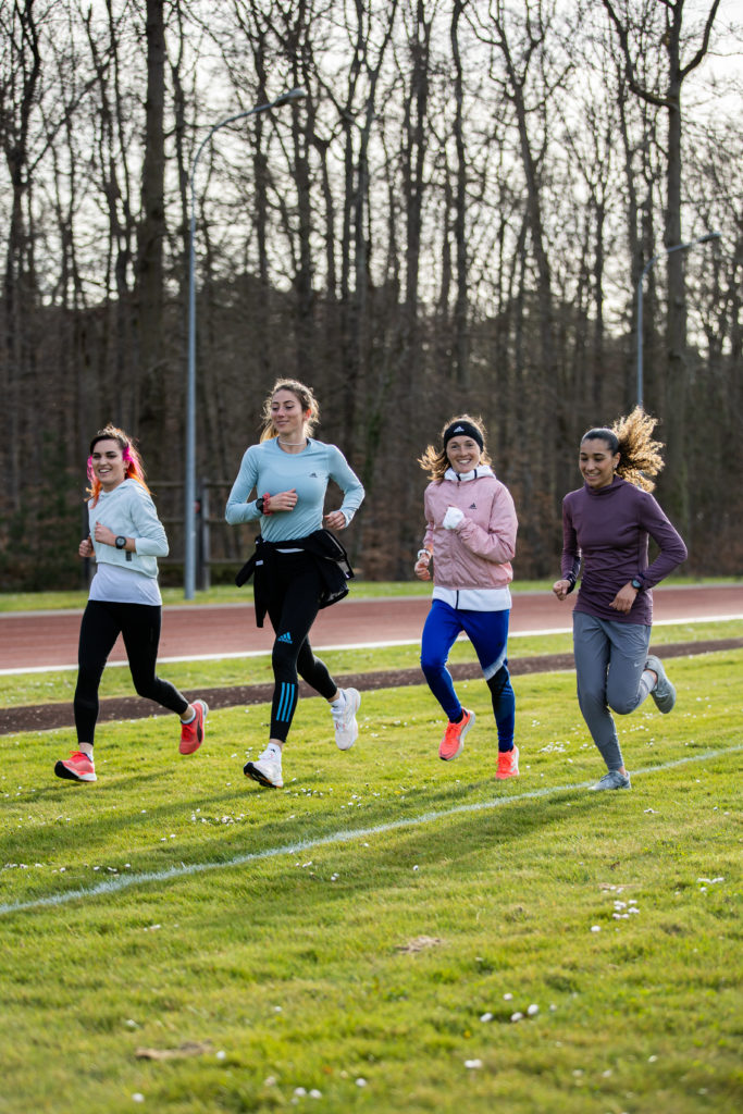 Les athlètes de haut niveau ne s’entrainent ainsi pas séparément, sauf dans les périodes de compétitions où la majeure partie de leurs séances se situent au CNSD. Sinon l’entrainement se fait avec tous les athlètes du club. Tous les dimanches matin, ils ont même une petite « tradition », tous ensemble, les athlètes de club de tout niveau, homme, femme, jeunes, moins jeunes, athlètes de haut niveau, loisirs … se réunissent pour partir courir dans la forêt de Fontainebleau. Cette tradition est importante, comme nous l’a expliqué Leila. Depuis toute petite, elle participe à ce rendez-vous hebdomadaire, heureuse plus jeune de pouvoir courir avec les athlètes de haut niveau qui la faisait rêver, réussissant au fil des années à les accrocher pour finir plus tard ses séances avec eux et être aujourd’hui à son tour un modèle pour les plus jeunes.