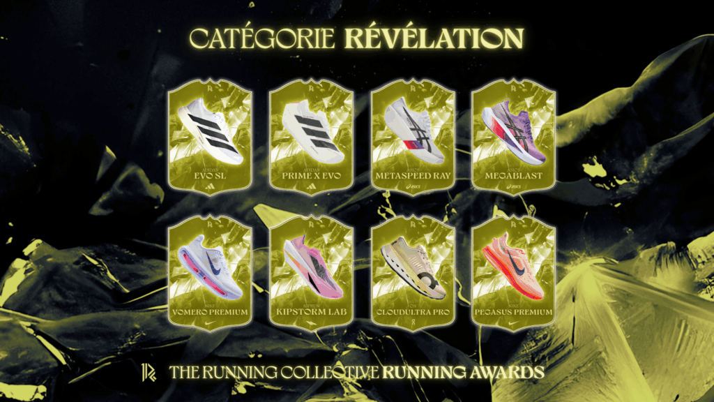 - Dans la catégorie révélation, nouvelle victoire écrasante de la Adidas Evo SL avec… 33% des votes ! Avec deux titres remportés haut la main, on a pas peur de l’affirmer : la Evo SL est LA chaussure de cette année 2025 👏