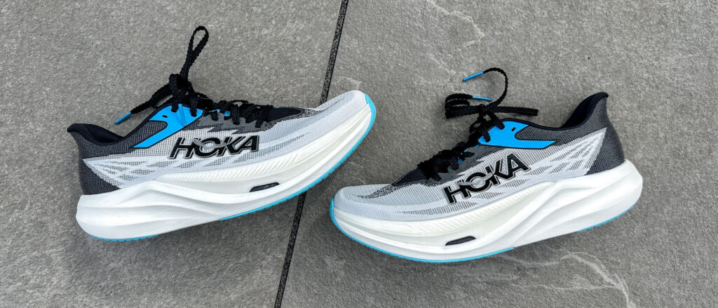 La Hoka Rocket X3 se démarque nettement de sa cousine la Hoka Carbon X3 sur le terrain de la vitesse pure. Son profil plus agressif et sa structure allégée la destinent aux courses rapides, du 5km jusqu’au marathon.