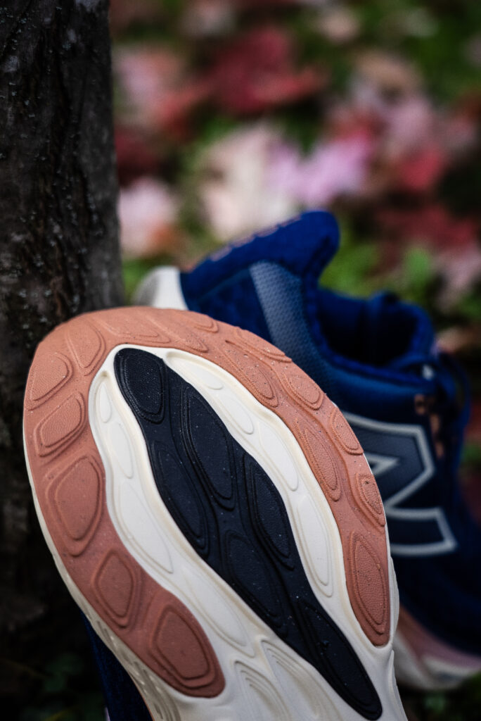 La structure de la semelle Fresh Foam X joue aussi un rôle important dans le maintien puisque sa densité variable crée une plateforme équilibrée, soutenant l’arche plantaire sans compromettre la flexibilité naturelle du pied (bien que l’on ressente quand même, comme évoqué plus haut, une certaine rigidité au niveau de la voute plantaire, mais c’est une question d’habitude).