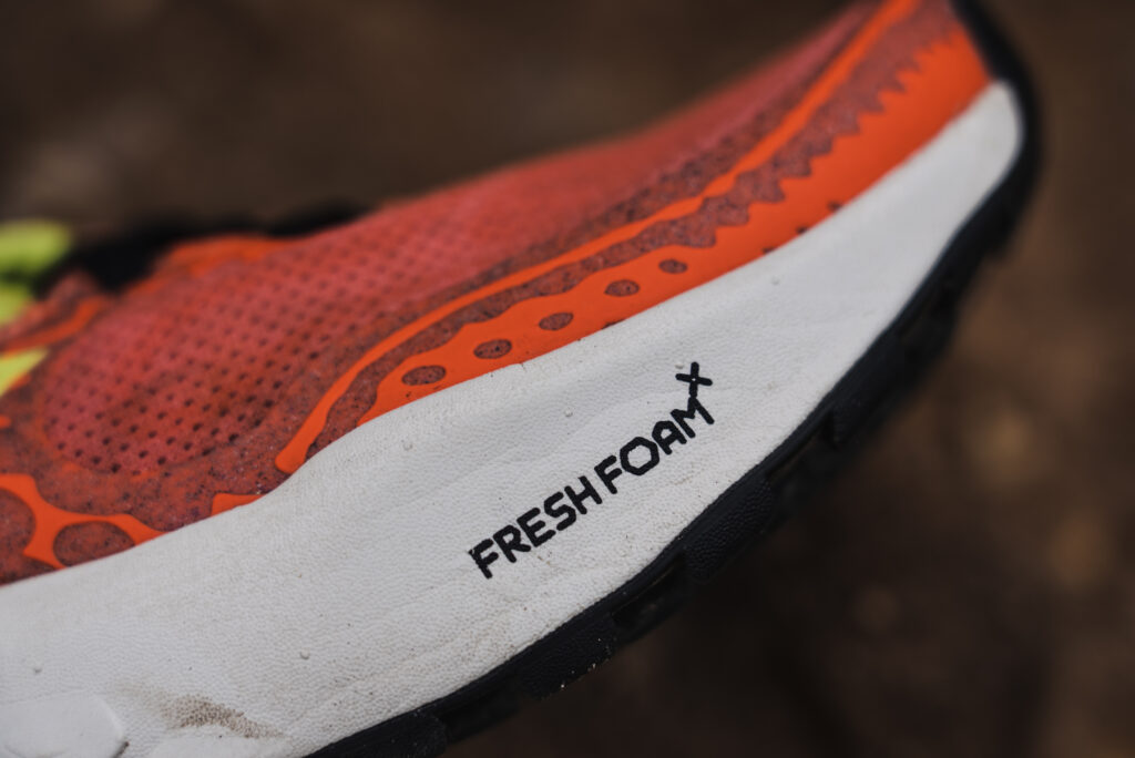 Commençons par le côté durabilité : c’est l’une des grosses évolutions de ce modèle. La semelle intermédiaire, composée de la technologie Fresh Foam X, est toujours présente mais avec un pourcentage de matériaux recyclés bien plus important que sur les modèles précédents : 40% des composants sont d’origine biologique !
