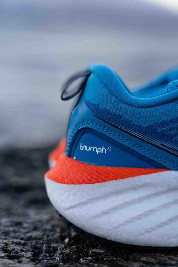 « Par rapport à la triumph 21 qui utilisait une mousse à base de TPU offrant une sensation de fermeté sous le pied, la 22 utilise une mousse de type PEBA qui procure une sensation plus douce en course.
