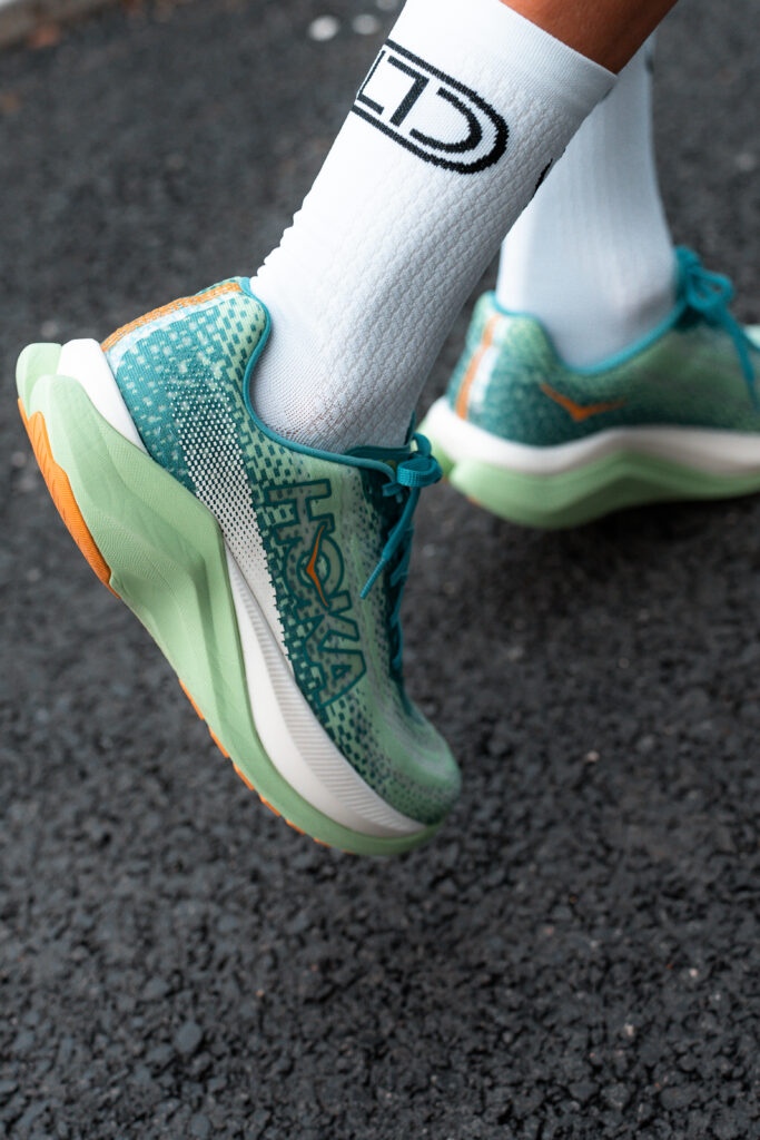 « Tout d’abord il faut savoir que je n’ai jamais porté de Hoka. Le fit et les sensations étaient donc toutes nouvelles. Je fais beaucoup de rotation de chaussures en fonction des seances. Les premières sensations sont que la chaussure est très confortable. Ce qui surprend tout de suite c’est la sensation de propulsion qu’elle procure. Il m’a fallu seulement quelques mètres pour savoir que j’allais devoir l’utiliser sur des séances tempo pour pouvoir pleinement en profiter. C’est agréable de savoir qu’on peut avoir une paire de chaussures “non-carbone” qui va être efficace sur ce genre de séance.
