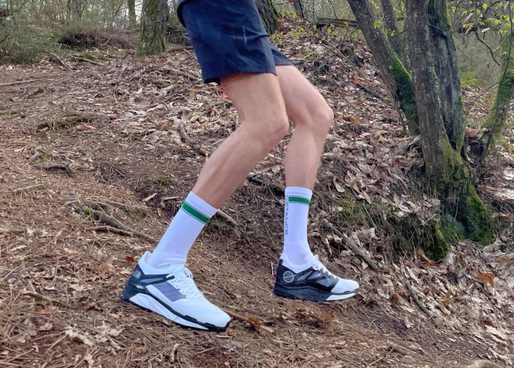 La chaussure est construite comme un chausson et la languette n’existe plus. Le pieds est alors complétement enveloppé et très bien maintenu. Grâce aux deux couches de mousses distinctes, vous pouvez profiter du confort de l’absorption des chocs sur les longues distances.